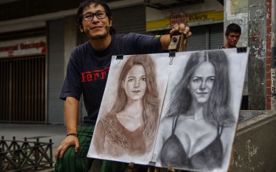 Aprendió estas técnicas en carboncillo viajando diez años por Suramérica, trayecto que comenzó en Medellín. “Cuando yo llegué acá me pareció la meca de los artistas…