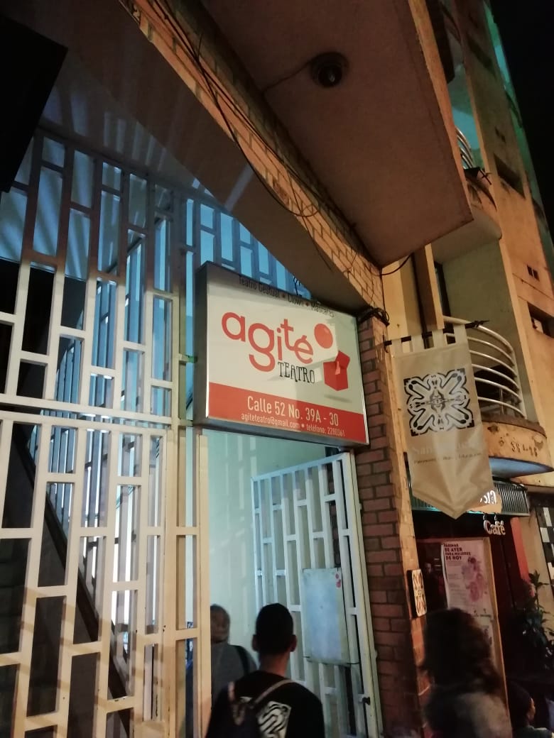 El corredor de ingreso tendrá máximo un metro de ancho, conduce a una especie de sala con siete mesas de madera, unas cuantas sillas también de madera y un sofá blanco de tres puestos. Allí, a un costado hay un pequeño bar y una cortina roja. No es más que el hall para descansar antes de poder disfrutar de una obra de teatro en una pequeña sala para sesenta personas.